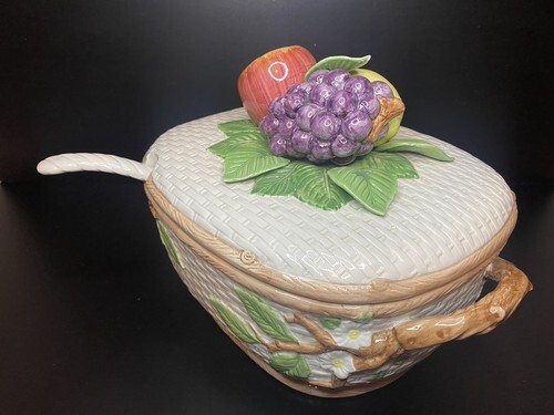 Fitz and Floyd FRUIT FAIR 3.5 QT Soup Tureen with Ladle and Original Box 1990