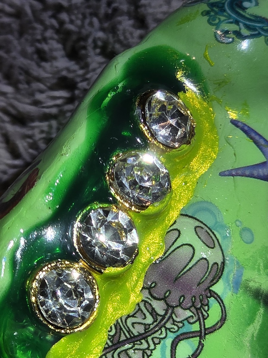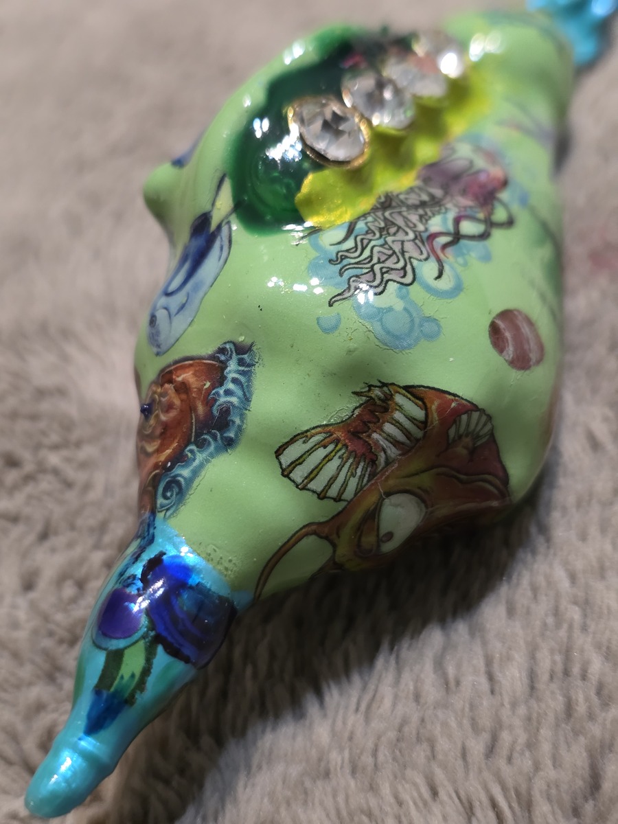 This item.....also placed into the "home garden" corridor for extended viewing......is a MOBILE/DANGLE of Exquisite Beauty Manufacturing Excellence.......I Kid You Not........with curing well over 120 hrs logistics/prep assembly/babysitting.......an of course MURPHY trying to screw me up all the way!!......really,it wasn't easy.......mostly ink transfer......some hand work.....w-ZIRCON accents.........an gold leaf......Entire Object is Coated in X 8 LIQUID GLASS........if ur individualistic in your decor.....this item's for you.........THANKS! welldressedattic.