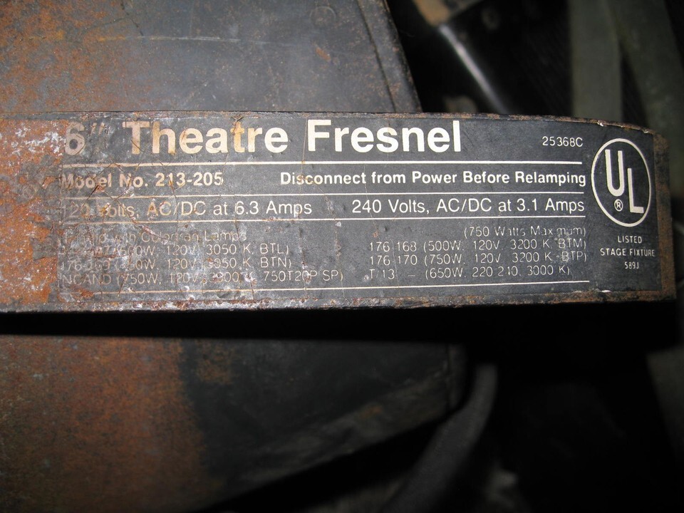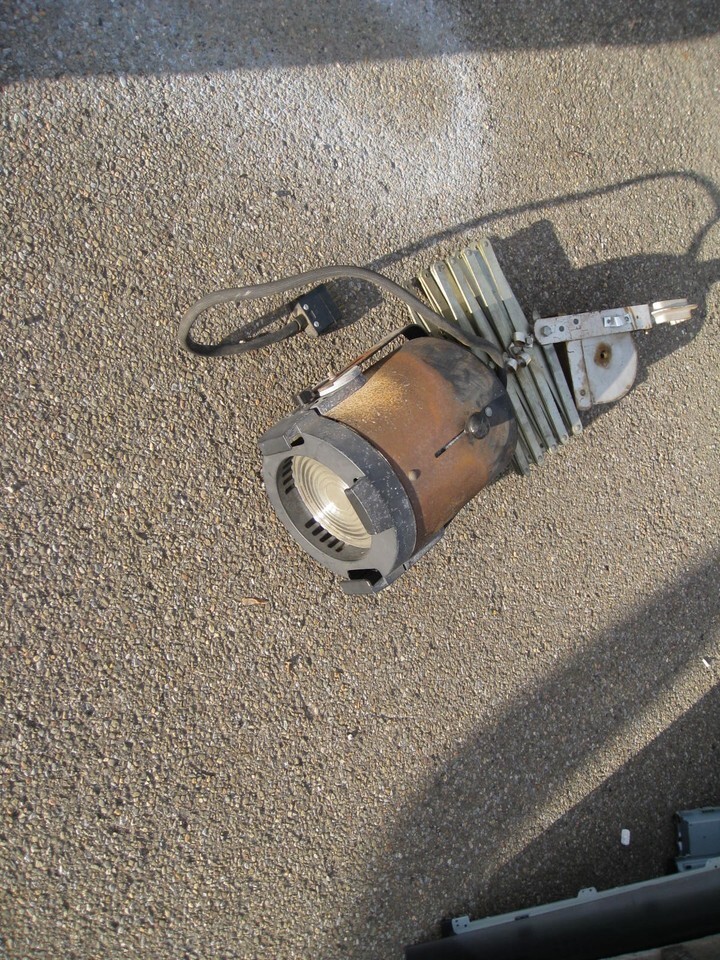 Fresnel fixture looks newer than the rest. No asbestos wire!, all newer w fiberglass cloth sleeve. Cable is about 30" w stage pin plug on end.