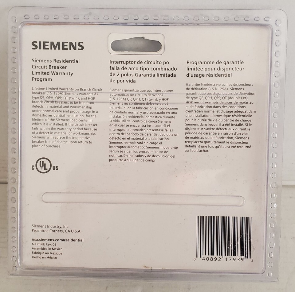 Easy plug in style for use with Siemens load centers and meter combos