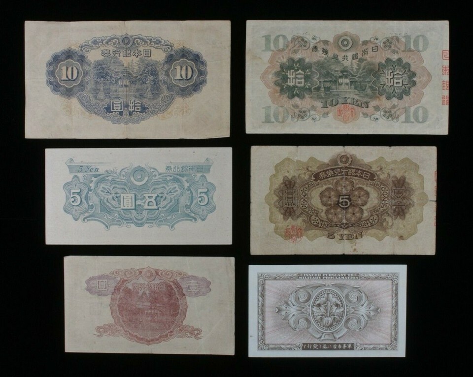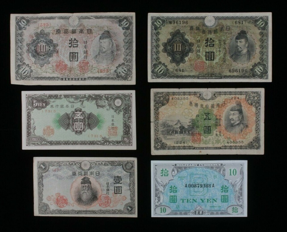 1930-1944 Japan 6-Notes Set // Imperial Japanese & Allied Military Currency