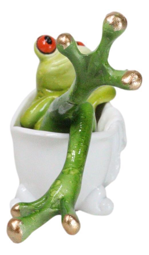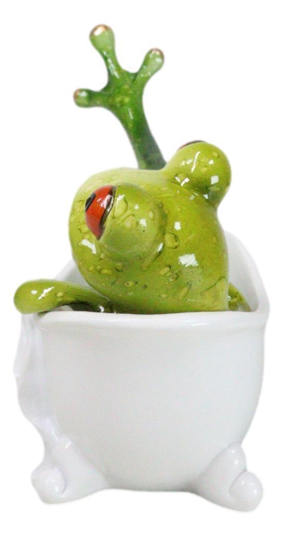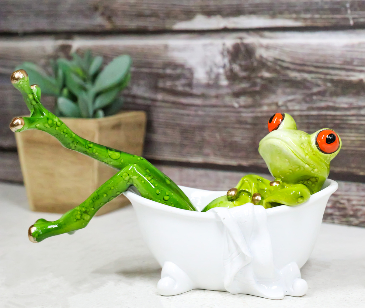 Whimsical Green Lady Diva Frog with Golden Nails Soaking in Bath Tub Figurine
