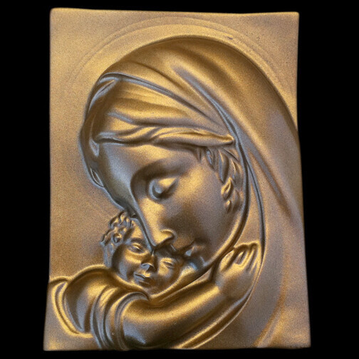 Virgin Mary and Baby Jesus Christ wall plaque in Bronze Finish