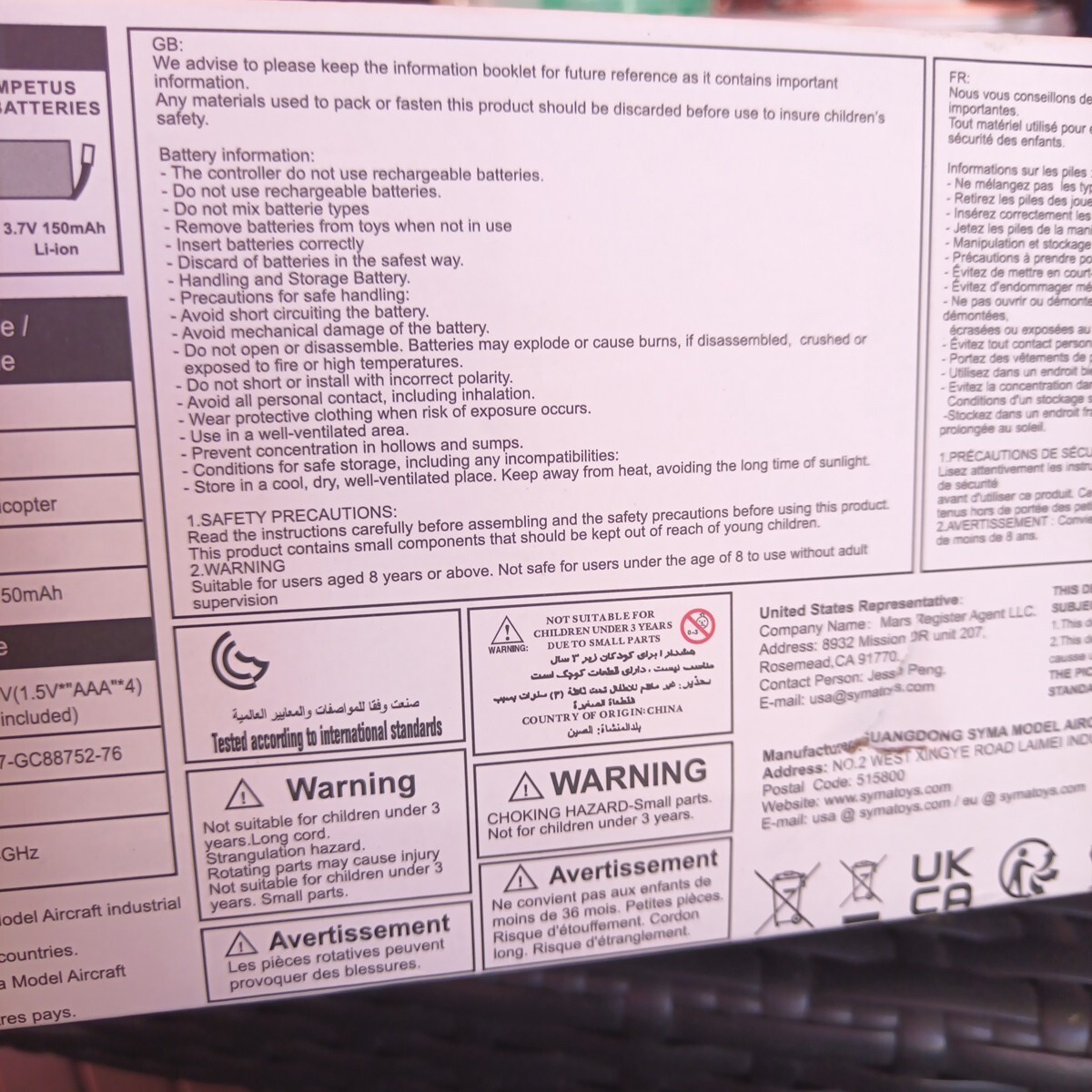 | Manufacturer recommended age: |