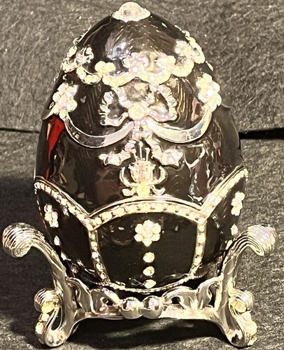 have an egg with Decor design of RED and Gold, rimmed with a beautifully laid out in the pattern. Gems form the decor pattern, same on reverse. Made in Russia by Russian artisans . Size 1.25 by 0.75 inches ( 2cm).