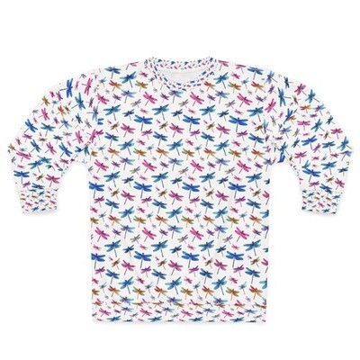 A soft, bohemian twist on everyday wear ? this crewneck carries a lively all-over dragonfly pattern that feels like a private garden stitched into fabric. The bright, fully printed design blooms edge to edge, so every glance reveals delicate wings and swirling motifs. Lightweight but substantial, the polyester holds color and shape wash after wash, while ribbed cuffs and collar give a gentle, stretchy fit that moves with you. Picture slipping it on for a slow morning coffee, a breezy market run, or an evening around a backyard fire: it adds a touch of wanderlust and quiet joy without shouting for attention.