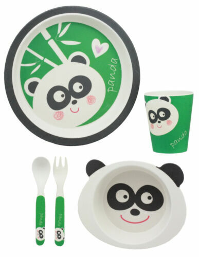 China Panda 5 Piece Organic Bamboo Dinnerware Set For Kids Children Toddler Baby