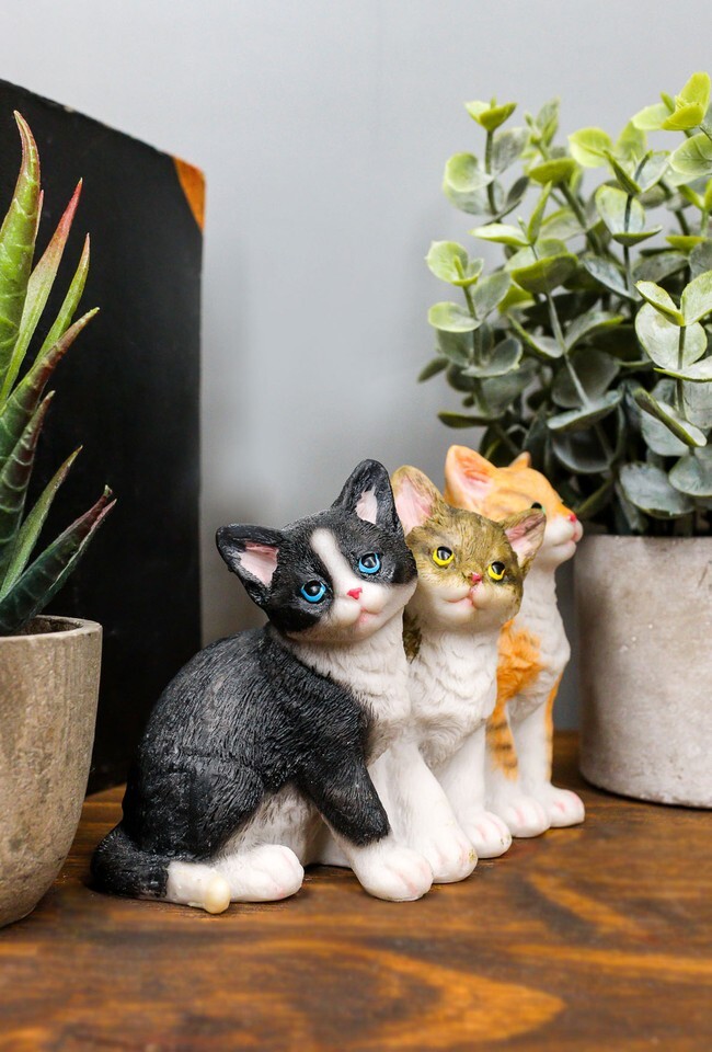 Ebros Lifelike Trio Shorthair Kittens Cats Sitting Side by Side Figurine 5" Long