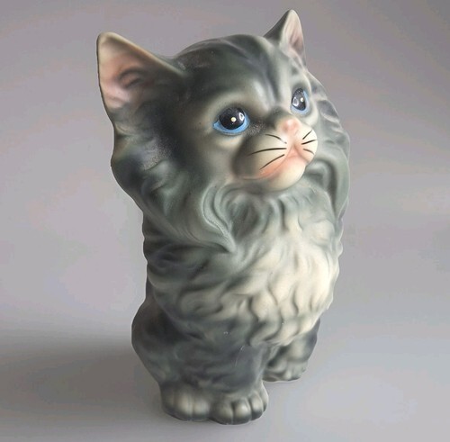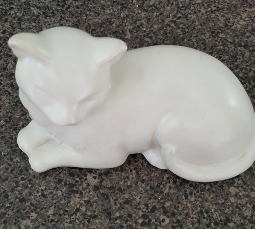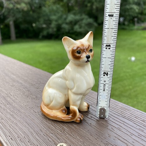 ? This Colorful Trio Shorthair Cats Figurine measures 3.5" tall, 5" long and 2.5" deep approximately. The sculpture weighs about 10 ounces.