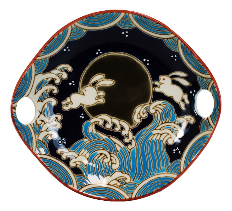 Rabbits By Black Moon Small Appetizer Coupe Plate Flat Bowl With Chopsticks Set