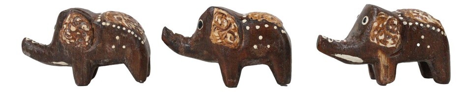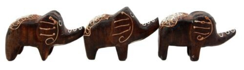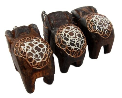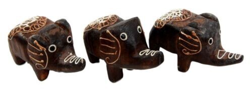 Balinese Wood Handicrafts Tail To Tail Elephant Miniature Figurines Set 2.75"L