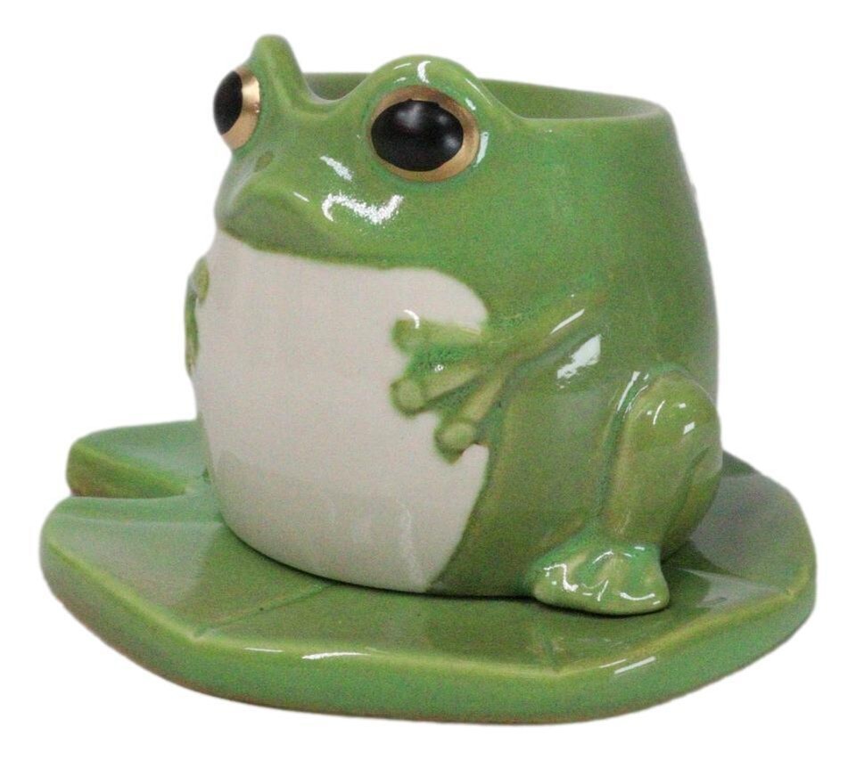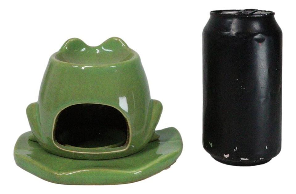 Whimsical Green Toad Frog On Lily Pad Ceramic Essential Oil Warmer Candle Holder