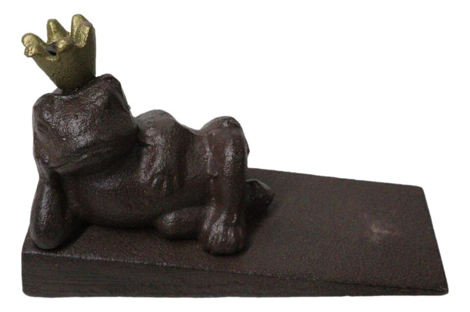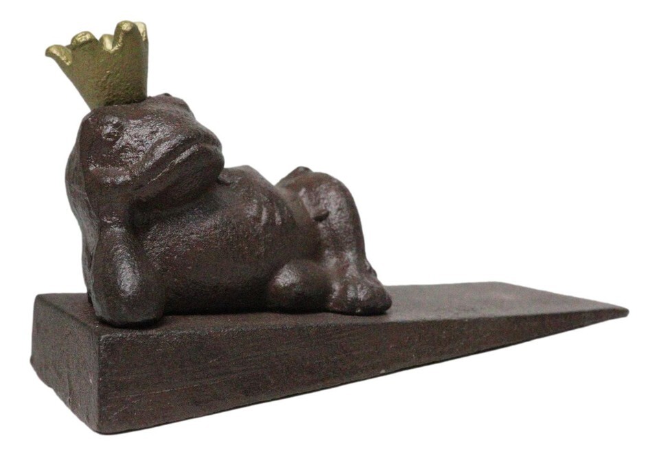 ? Add a fun and quirky touch to your home with the Cast Iron Frog King with Crown Door Wedge. This charming door stopper features a regal frog lounging contentedly with his crown, bringing a playful yet rustic vibe to any room. Crafted from durable cast iron, it keeps doors securely in place while adding a delightful, nature-inspired detail to your decor. Perfect for frog lovers or those who appreciate a bit of whimsy, this door wedge combines both functionality and character for your home.
