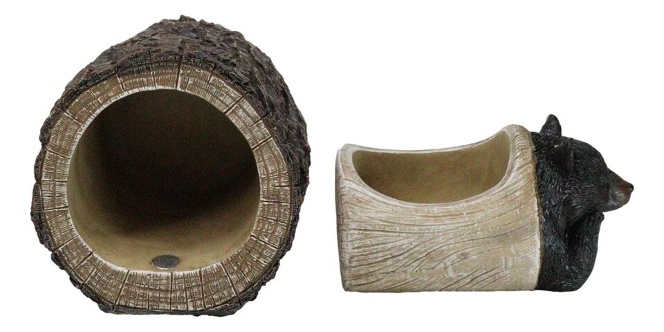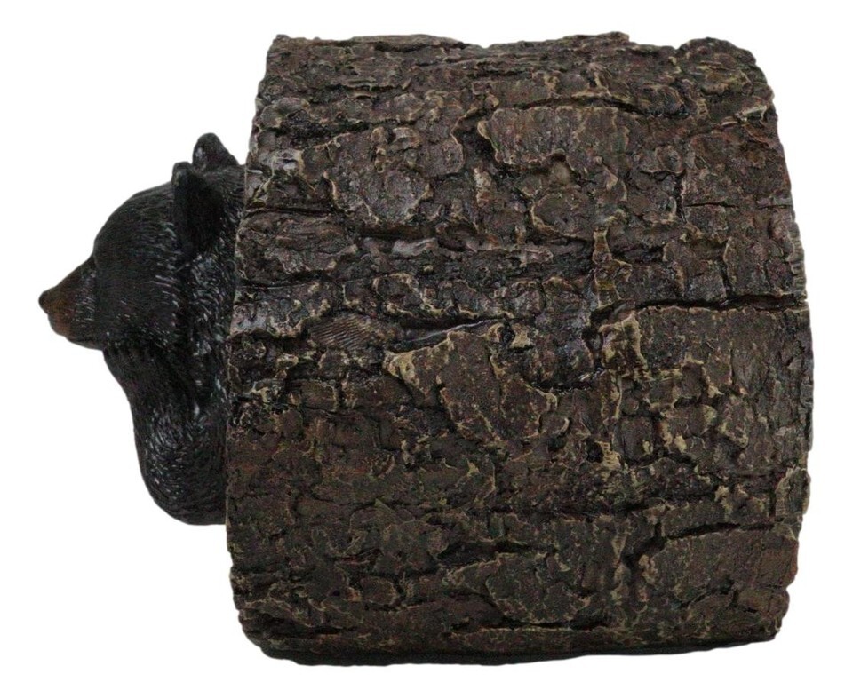 ? Capture the peaceful beauty of nature with the Daydreaming Black Bear in Tree Log Trinket Box. This delightful trinket box features an adorable black bear lounging contentedly inside a tree log, lost in a daydream. With intricate details and lifelike craftsmanship, this whimsical piece serves as both a charming decor item and a functional storage solution for small treasures. Ideal for animal lovers or those who appreciate rustic, woodland-inspired decor.