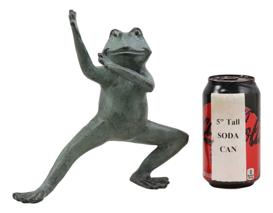 Aluminum Whimsical Tai Chi Kung Fu Crouching Frog Garden Statue Feng Shui Frogs