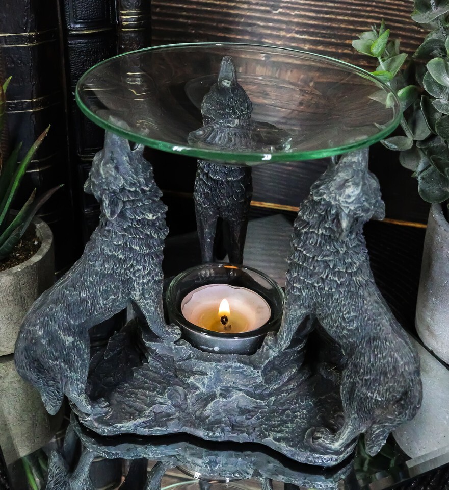 Ebros Moonlight Three Howling Wolves Oil Warmer Or Wax Tart Burner Diffuser