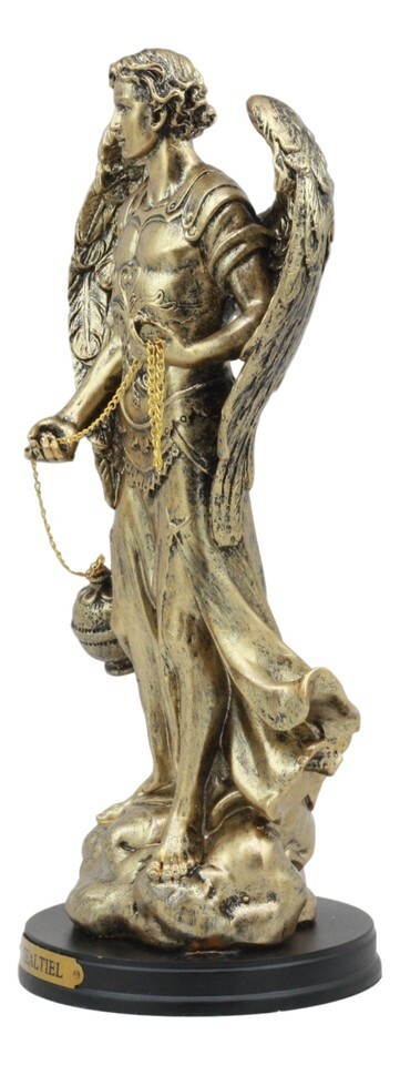 ? Own this marvelous figurine of the archangel Sealtiel, the patron saint of Prayer and Intercession. Sculpted and handpainted on resin medium, this figurine stands on a wooden base with his name written on a brass plate.