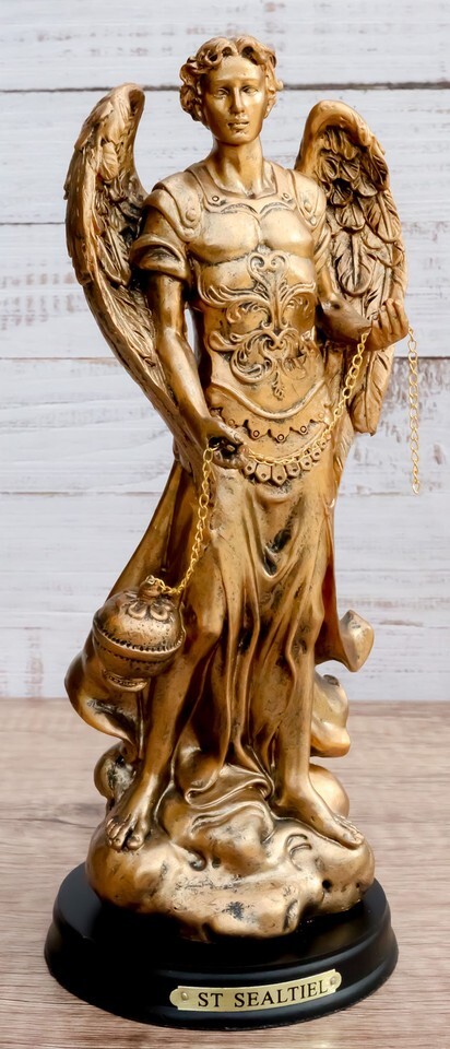 8"H Saint Sealtiel Archangel Resn Figurine Salulation And Prayer Of God Catholic