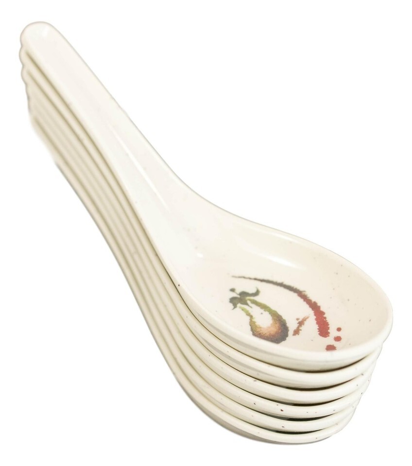 Pack of 6 Melamine Zen Swirl Eggplant Design Deep Chinese Asian Soup Spoons