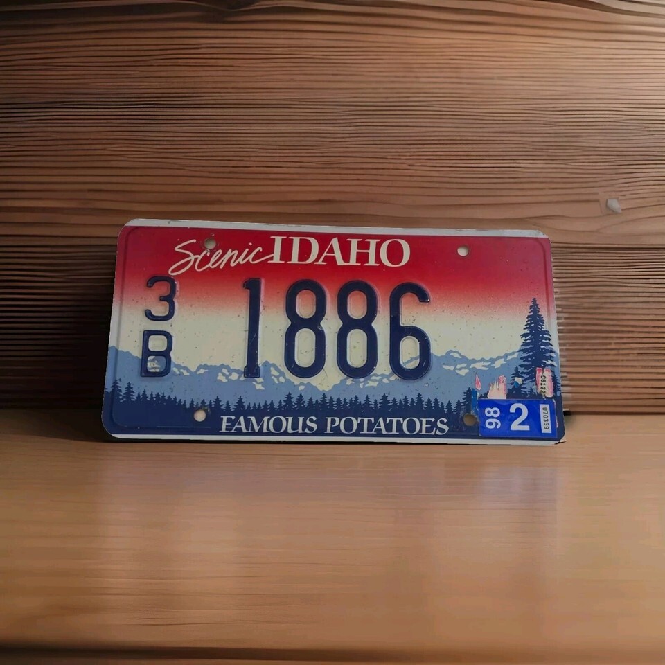 Show off your love for Idaho with this stunning '98 Scenic Idaho License Plate from Benewah County. The plate features the iconic phrase "Famous Potatoes" and the unique identifier "3B1886". The design also includes a pine tree, representing the natural beauty of Idaho.