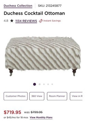 raymour flanigan ottoman, duchess cocktail ottoman, aria designs furniture, faux fur ottoman