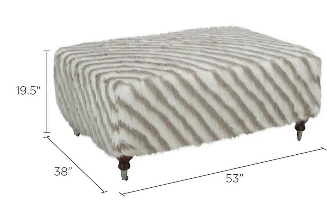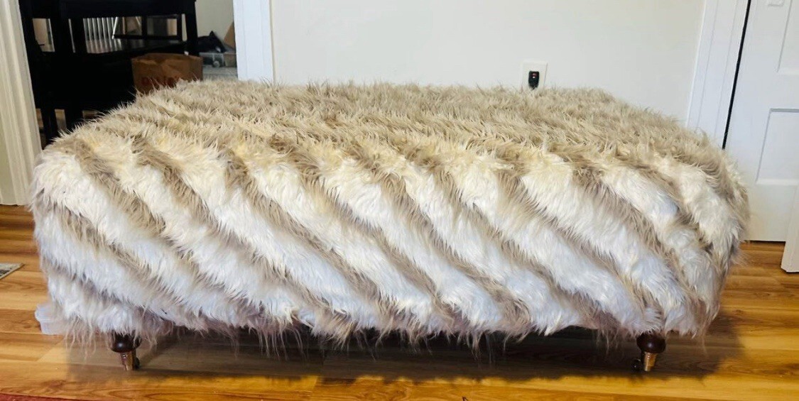 large living room ottoman, cocktail ottoman with casters, luxury upholstered ottoman, modern faux fur ottoman