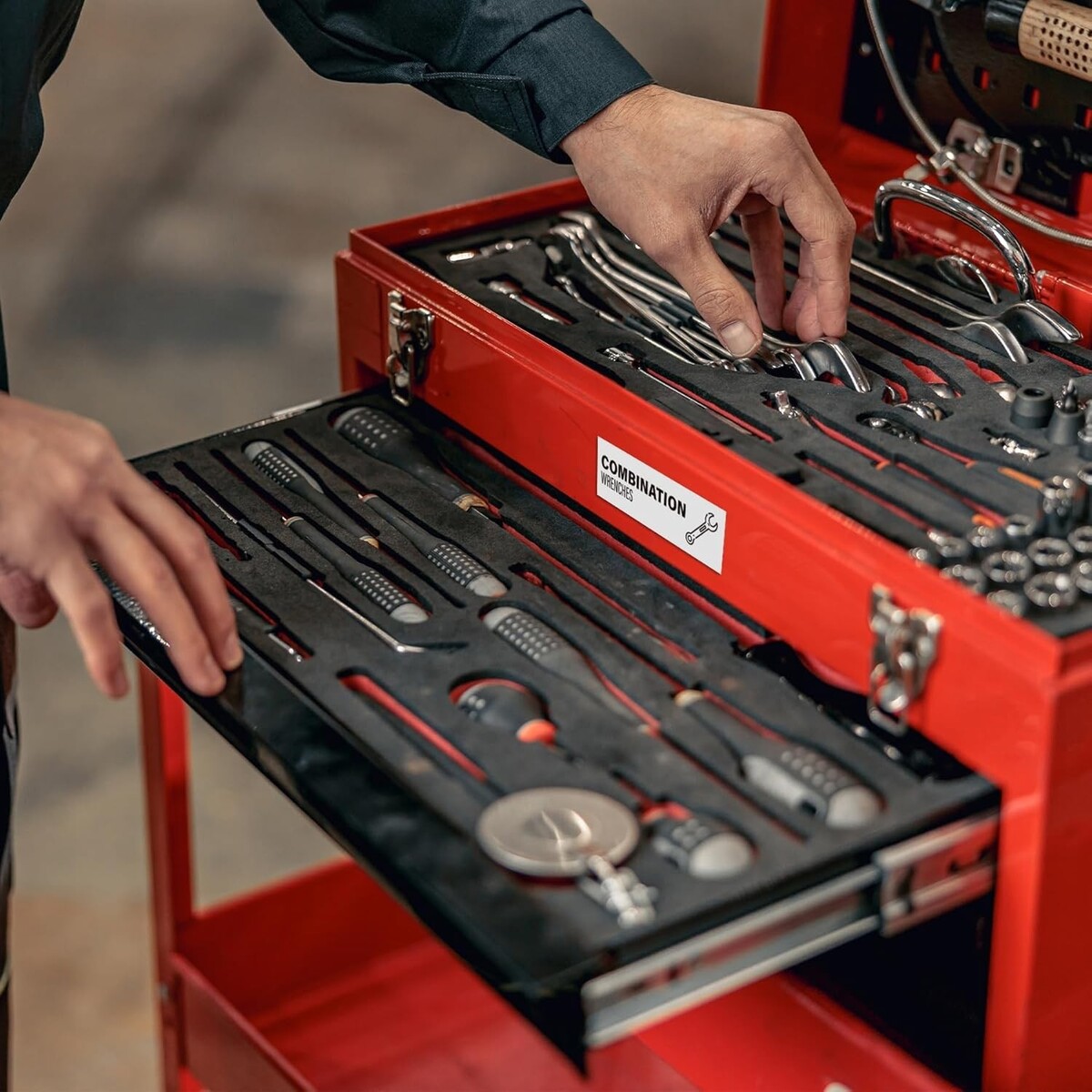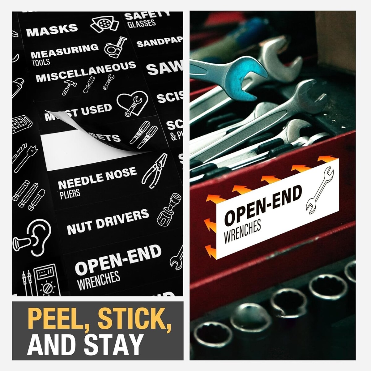 Just peel and stick! These tool chest labels use strong adhesive that stays firmly in place, even with frequent drawer use. They can be removed cleanly without scratching or stripping paint, making them a hassle-free solution for any metal storage cabinet or tool chest.