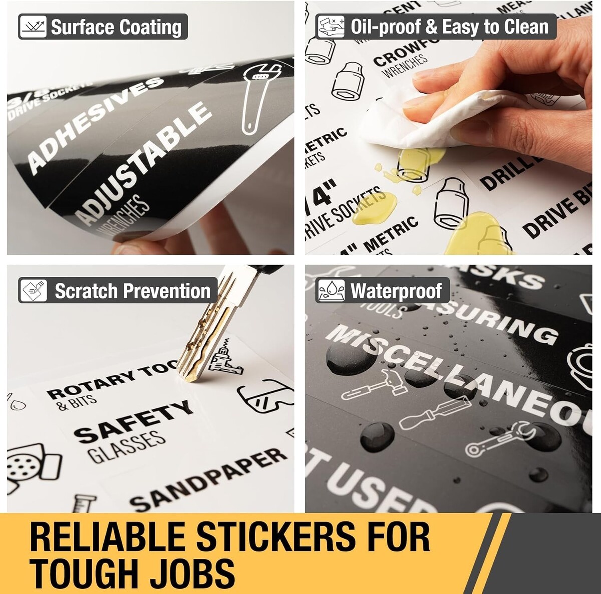 Made from high-quality ethylene material, these tool organizer stickers are waterproof, oil-resistant, and resistant to warping. Whether you?re working in a dusty garage, a busy workshop, or a professional workbench setup, these heavy-duty labels stay clean, intact, and legible for long-lasting performance.
