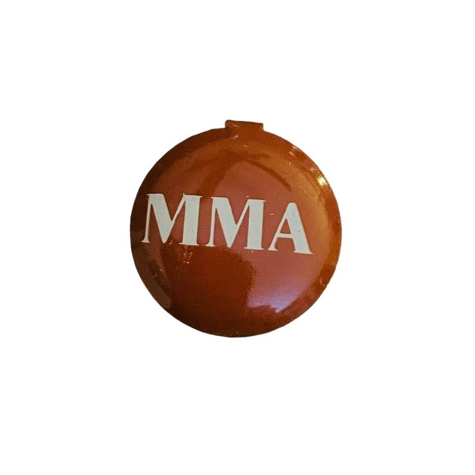 Vtg METROPOLITAN MUSEUM OF ART MMA METAL Museum Admission Tab BUTTON Red White