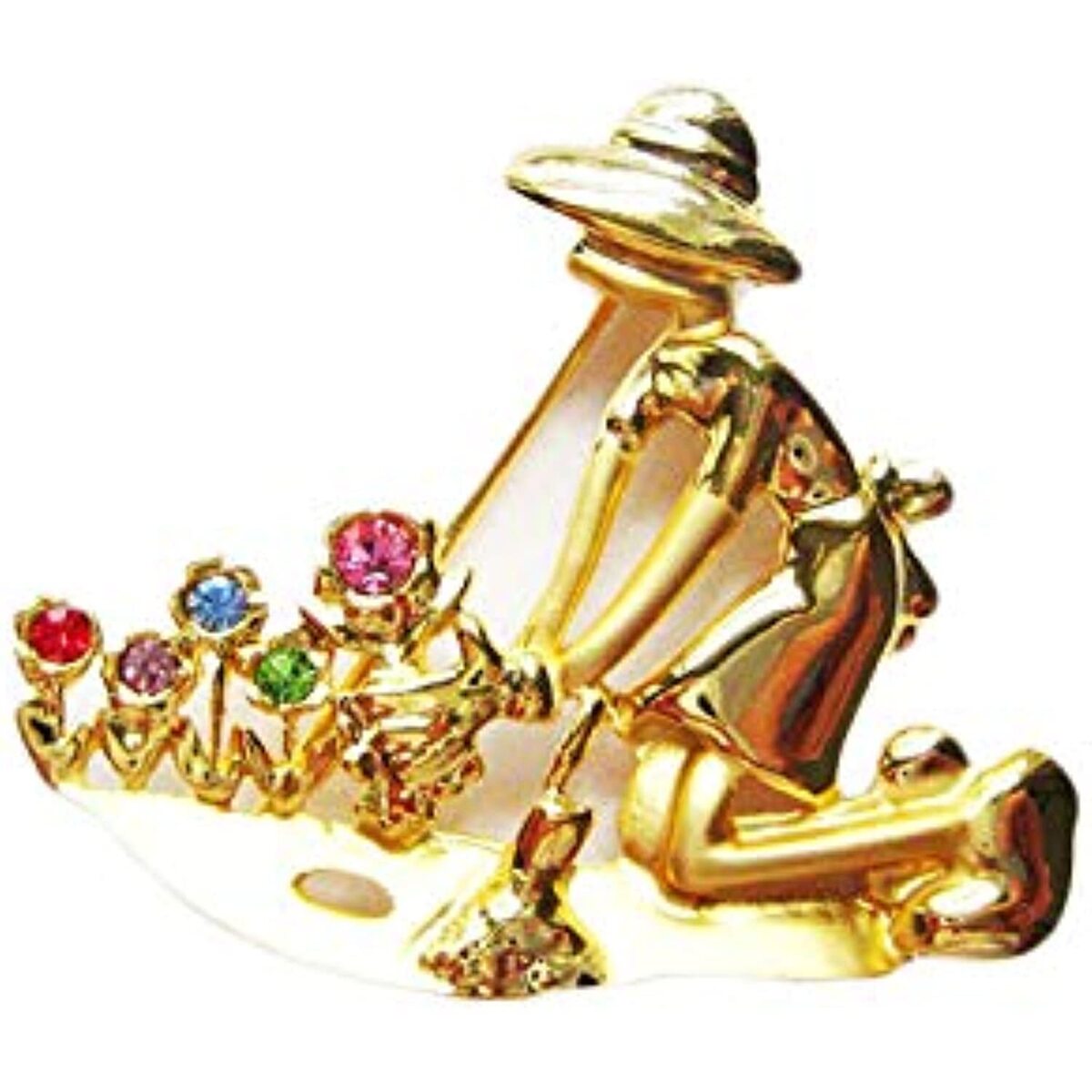 Pin portrays a gardener tending to flowers adorned with colorful crystal rhinestones.
