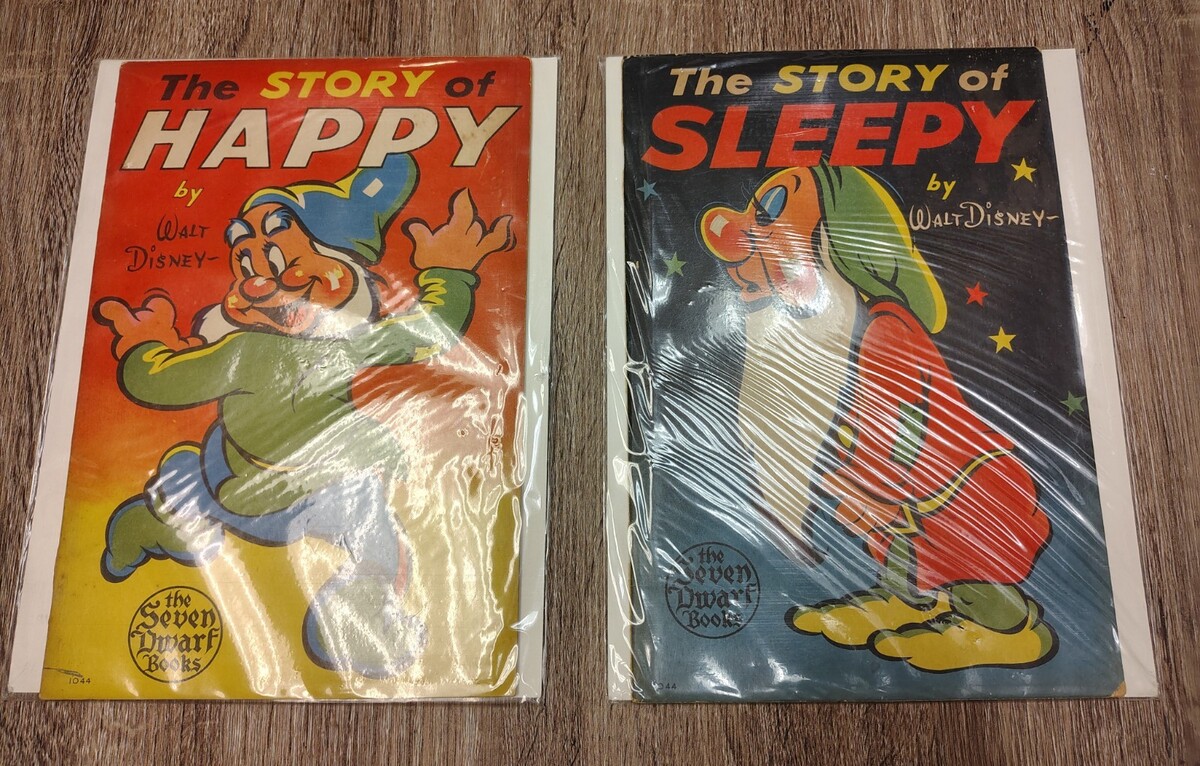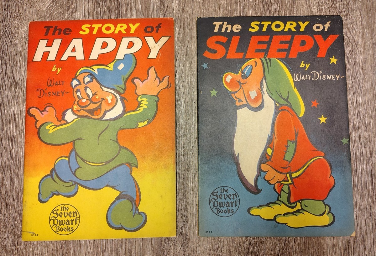 Vtg 1938 Walt Disney SNOW WHITE SEVEN DWARFS Books - Story of HAPPY & SLEEPY
