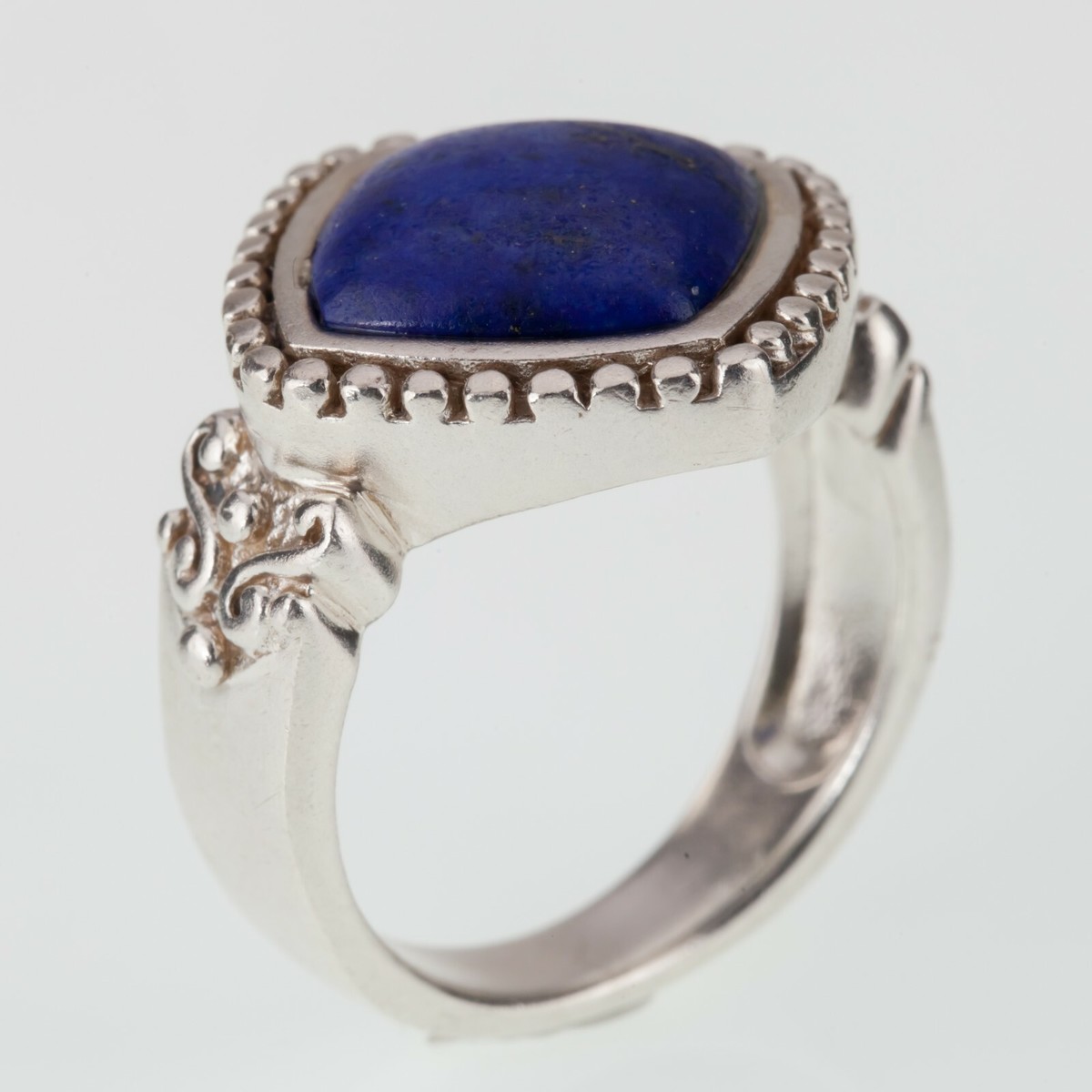 Features a cabochon cushion Lapis that's bezel set