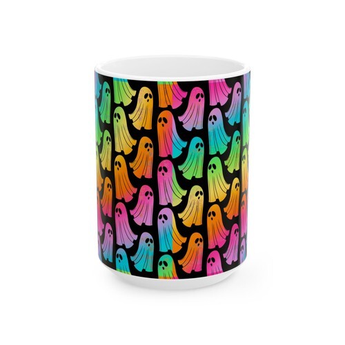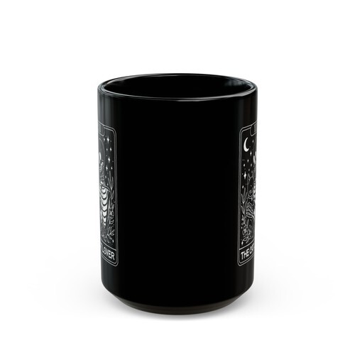 - Glossy black ceramic with vivid full-wrap artwork