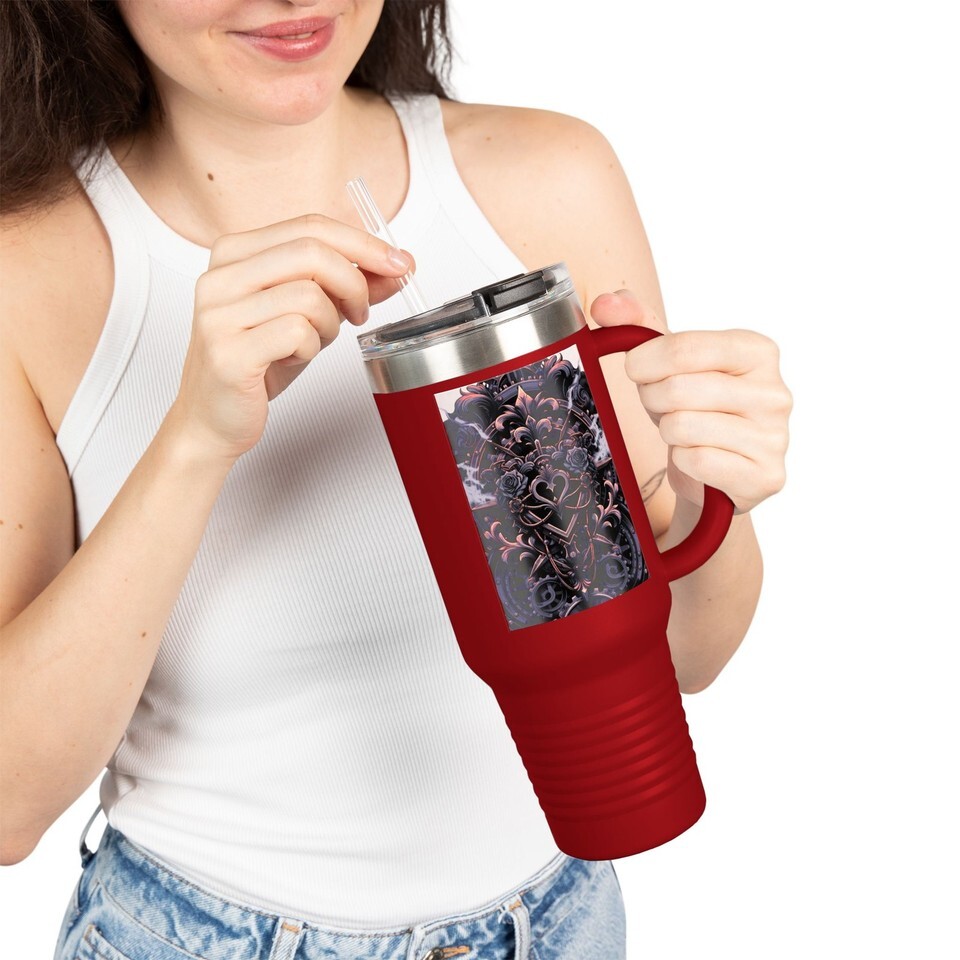 Steampunk Gothic Floral Heart 40oz Tumbler Insulated Roses Artwork