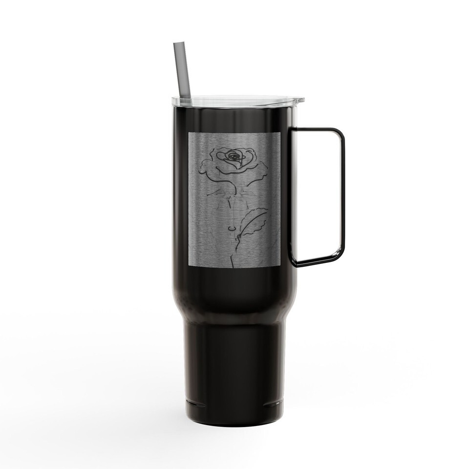 Laser Engraved Gothic Rose 40oz Black Tumbler FREE SHIPPING Straw