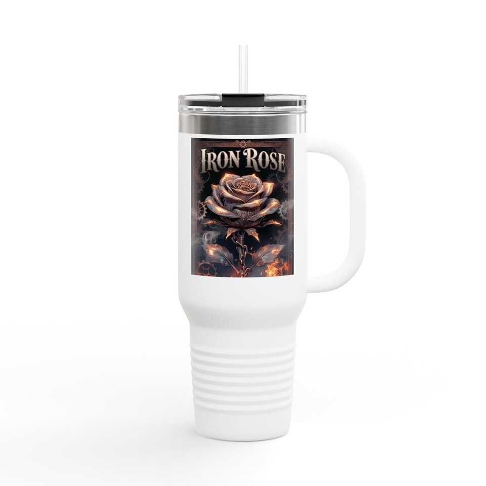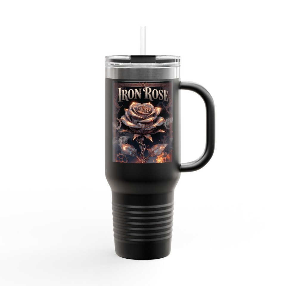 Metallic Iron Rose Steampunk Floral 40oz Travel Tumbler