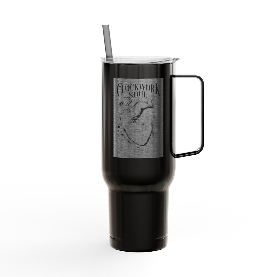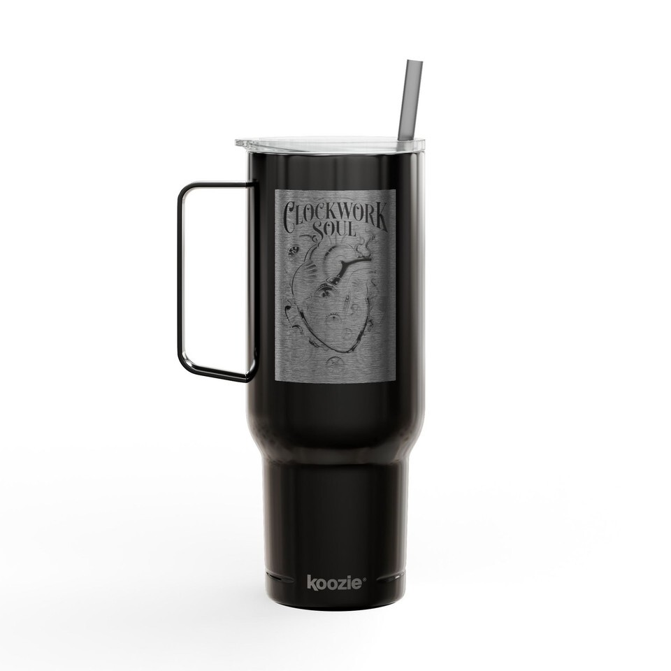 This 40oz insulated tumbler feels like a reliable companion for long days on the move. Engraved artwork adds a subtle, textured finish that sits quietly against the glossy recycled-steel body. A large comfort handle and tapered base make it easy to carry and settle into cup holders. The double-wall vacuum insulation keeps coffee piping hot or iced drinks cold for hours, while the press-fit slider lid and matching straw let you sip without worry. It?s made largely from recycled materials, so it looks good and lowers waste. Hand wash to preserve the engraving and glossy finish.