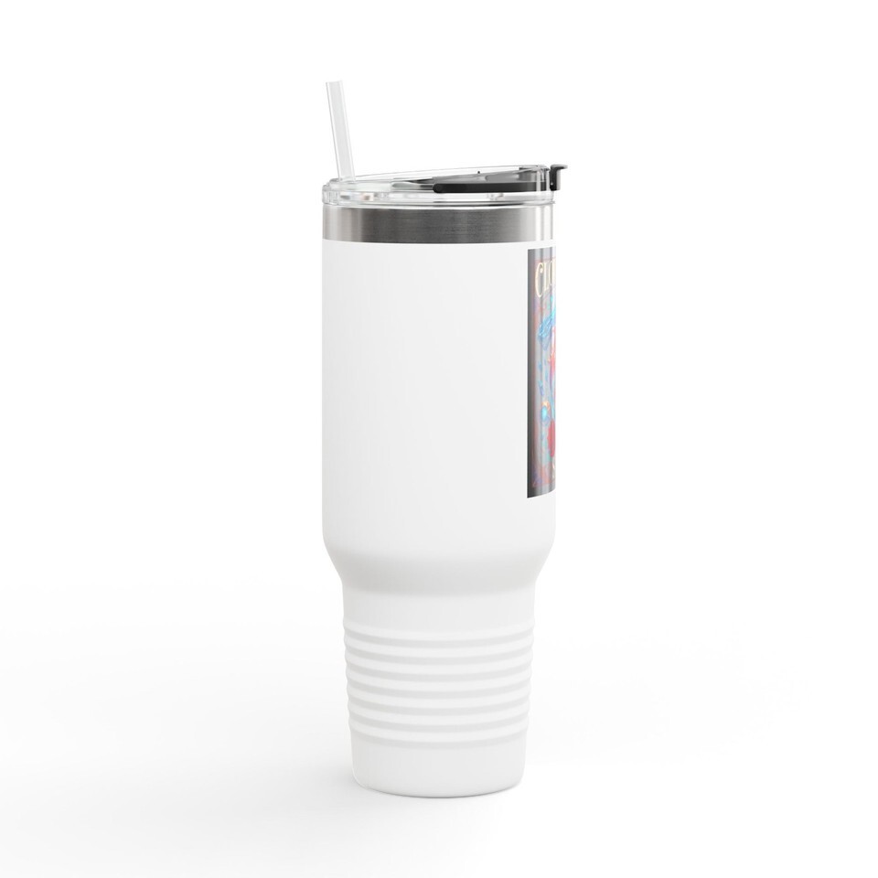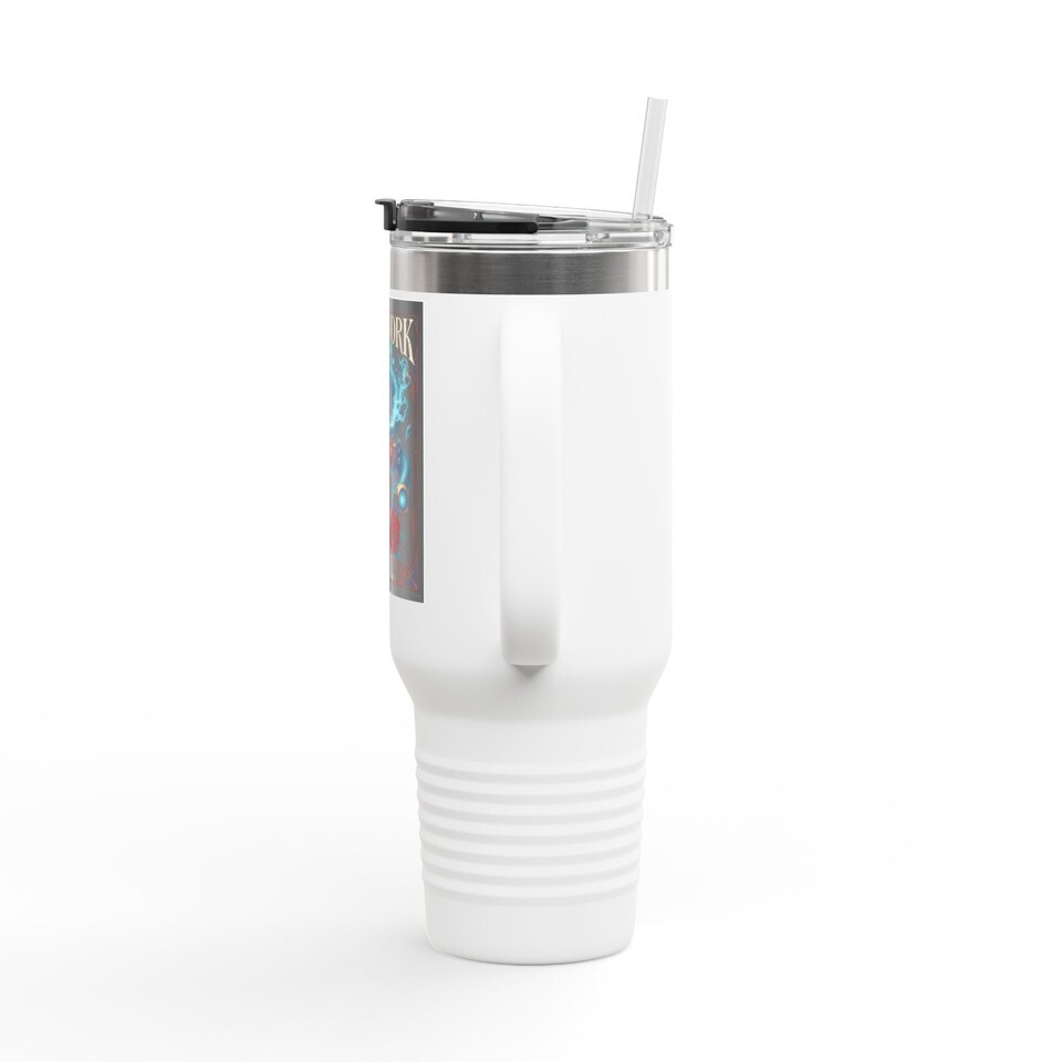 This 40oz insulated travel mug is built for long days on the road and late-night creative sessions. Its hefty capacity and double-wall stainless steel construction keep coffee hot (or iced drinks cold) through long drives, studio marathons, and festival mornings. The ergonomic handle and included straw make sipping comfortable and spill-resistant while the secure, leak-proof lid locks in your drink and limits distractions. The powder-coated finish feels good in the hand and the vibrant UV-DTF print holds detailed, full-color artwork?so your favorite design travels with you. Choose from eight color options to match your gear. Hand wash recommended to keep the print and coating looking their best.