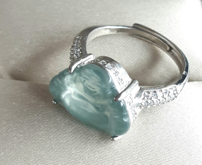 Title: [Investment Grade] 15mm ICE Jadeite Ring - Rare Sky Blue - Grade A All Natural - S925 Silver Adj.