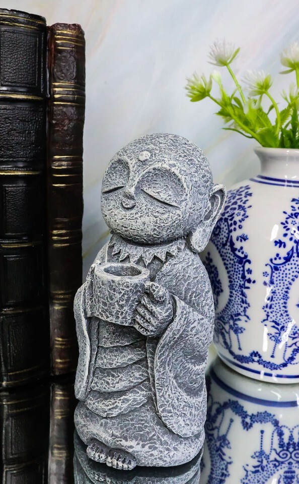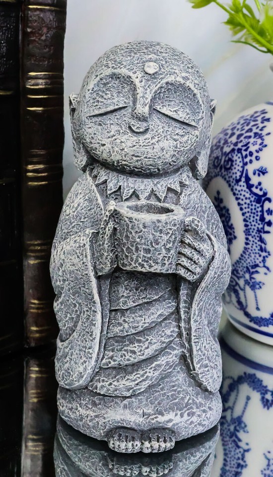 Feng Shui Zen Buddha Japanese Jizo Monk Drinking Out Of Tea Cup Figurine 5"H