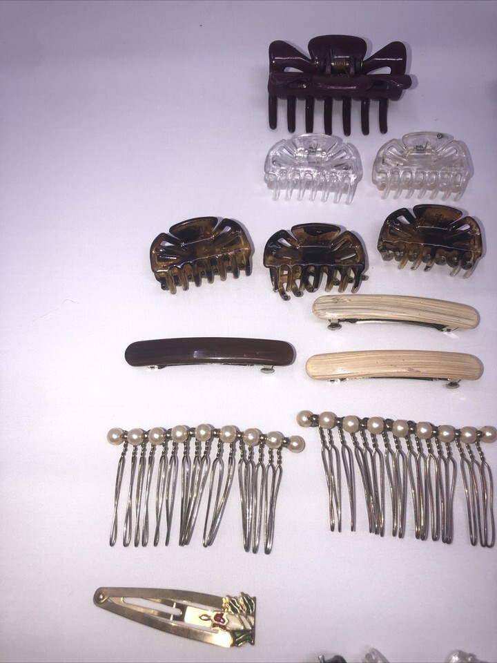 Large Lot Of Mixed Vintage And Current Hair Clips, barrettes&Claws 35 Pieces