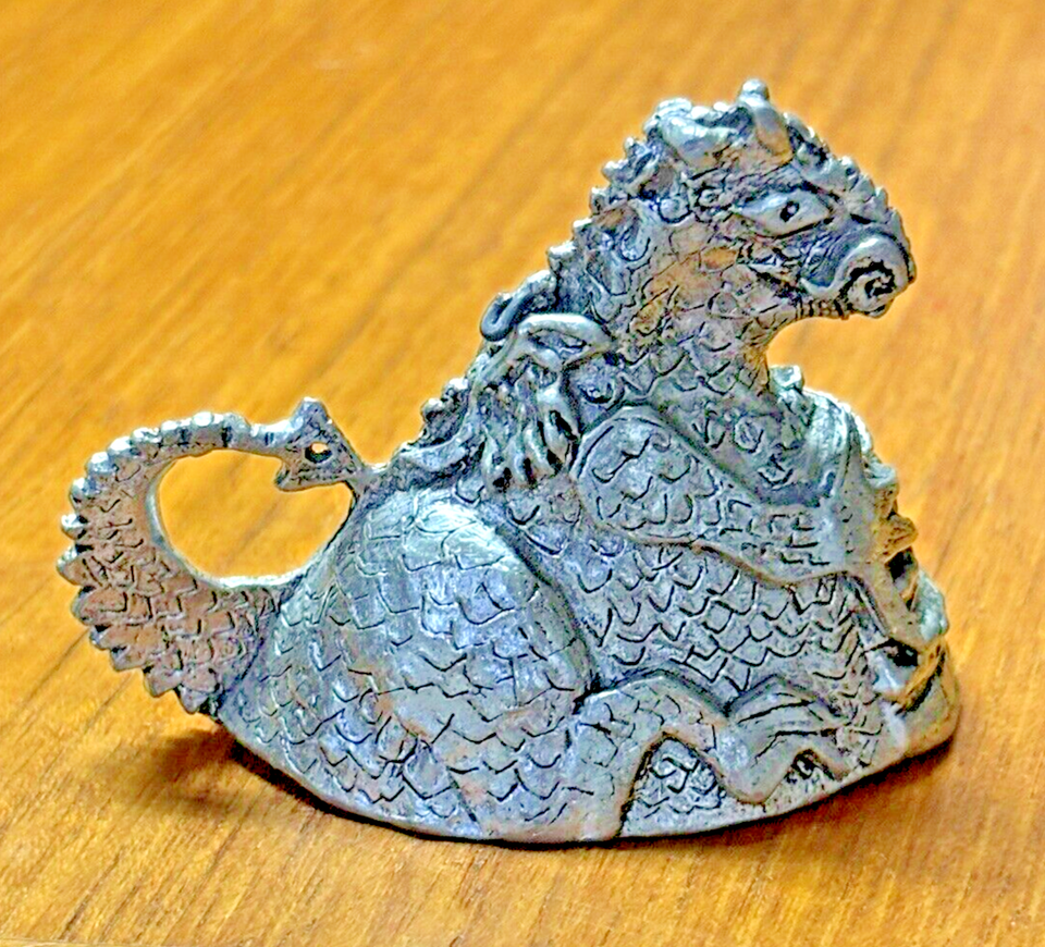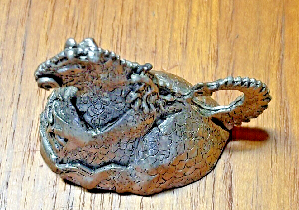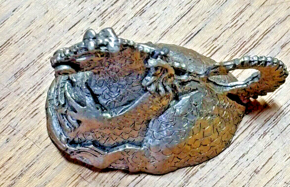 Up for bid is a Pre-0wned Vintage Dragon Shaped Bell from the 1980's. It is called the "Happy Dragon" because it has a Knight in its tummy. This item s a dragon bell and when you lift it up and turn it over you see the knight in the dragon's tummy. When you shake the dragon it "rings" as the knight moves inside of it. Please see all photos and the video before making a bid.