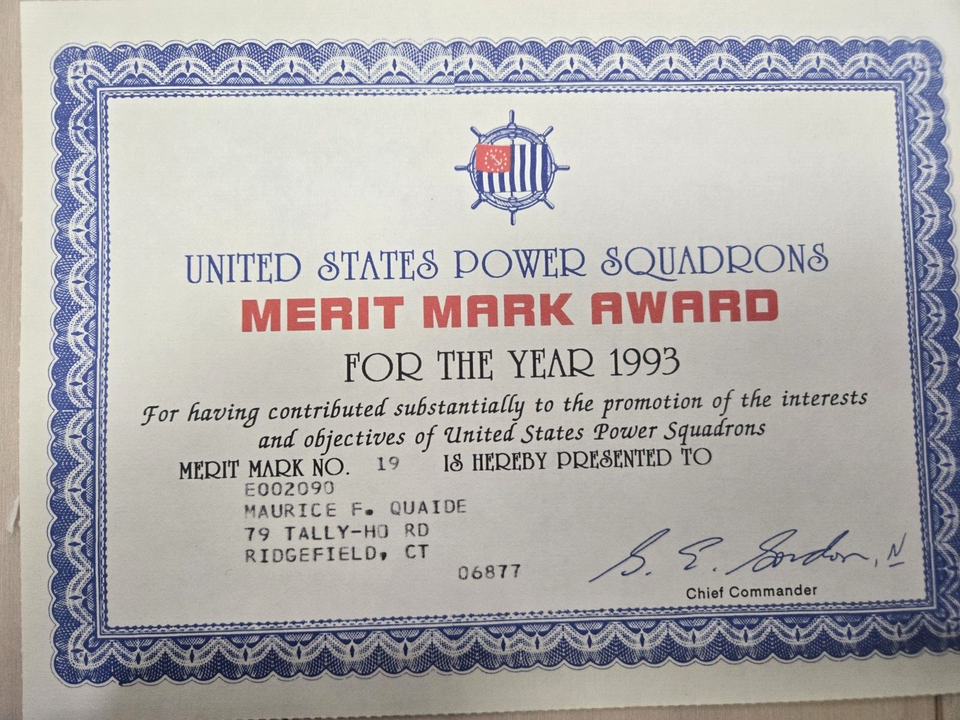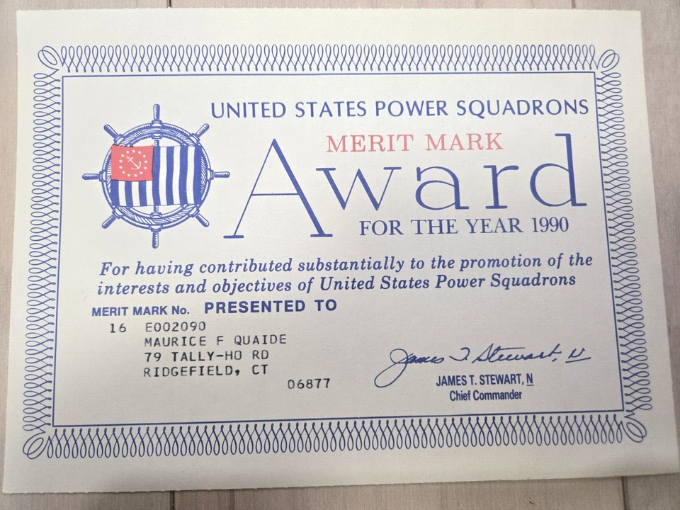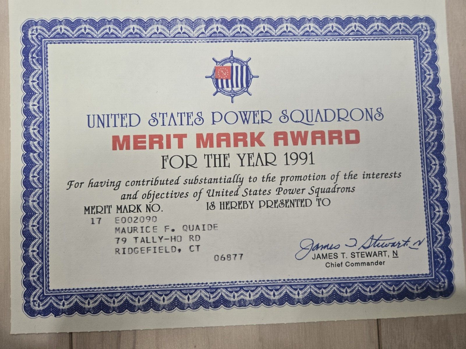 Up for bid is a lot of 3 US Power Squadron Merit Mark Award certificates