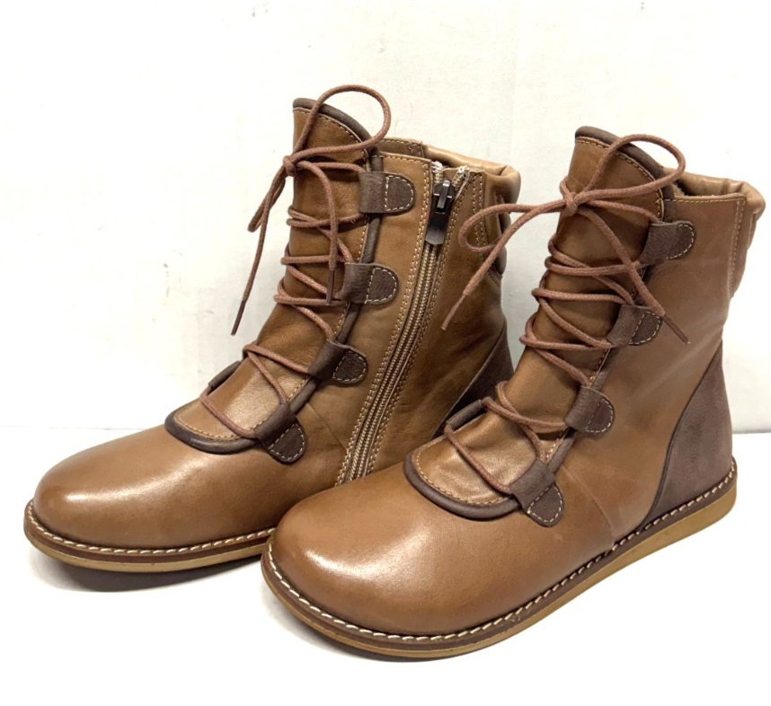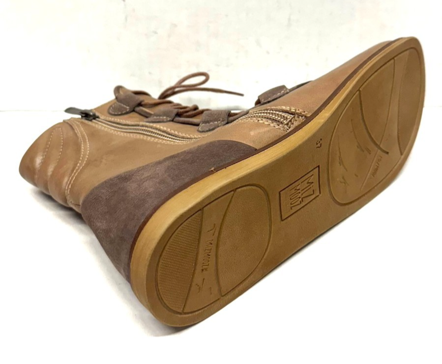 MIZ MOOZ FLATS LEATHER LACE UP BOOTIE SIDE ZIP COFFEE 37EU / 7US NEW # Z-168