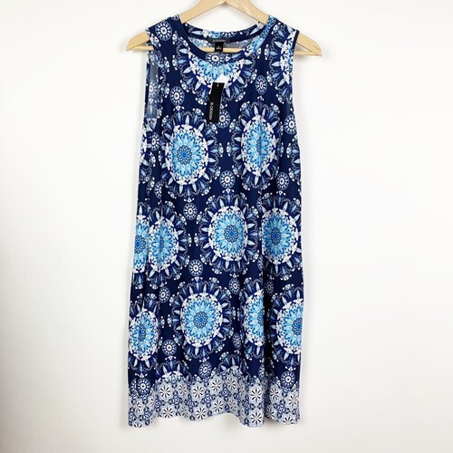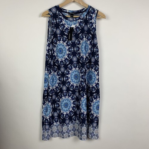 B Design PRINTED SHEATH DRESS knee length Sleeveless Size S Pockets
