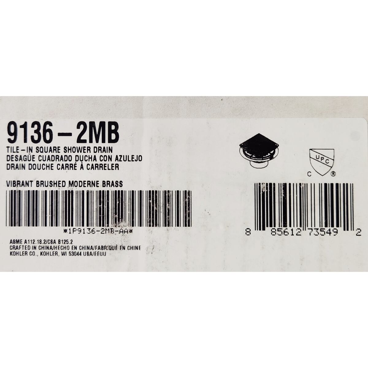 Kohler 9136-2MB Clearflo Square Design Tile-In Shower Drain - Vibrant Brushed Moderne Brass