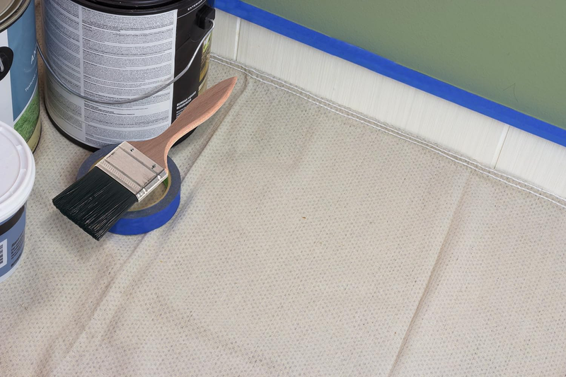 CoverGrip Safety Drop Cloth, a smaller 8-ounce drop cloth with a pattern of slip resistant dots on the back side, ideal for small projects. The material is to lie flat conforming to most surfaces and remain in place when people or equipment are working on it. This product resists spills and performs all the functions of a traditional drop cloth with the addition of safety. The ingenious CoverGrip drop cloth simply and elegantly provides protection, not just to the beautiful surfaces in our homes, but also for the people who work and live in them. The dots are the difference. CoverGrip drop cloths are manufactured with thousands of tiny, rubberized dots firmly attached to the bottom of each protective cloth. Once pressure is applied, the rubber dots grab and hold firm. The dots are slightly rounded which allows them to effectively increase grip even when under a shifting load. The rows of dots also enable CoverGrip drop cloths to easily fold and conform to surfaces. The cloths fold perfectly -right on the dotted lines, to fit snugly on stairs, into corners or anywhere they're needed. Once positioned, they "hold their fold" to stay in place; no more inadvertently exposed surfaces! You can easily move the cloth around to reposition it whenever you want, but when they're under a load you can't make them budge. Make your work place safer and reduce accidents while working on wood, title, concrete, metal, marble, granite, and many more surfaces. Ideal for painters, electricians, wood workers, plumbers, movers, custodians, etc. Finally when you're done, just pick up your CoverGrip cloth and put it away. The cotton-poly canvas is machine washable (the dots won't fall off) and easily folds up. The CoverGrip drop cloths are available in a variety of sizes and weights.