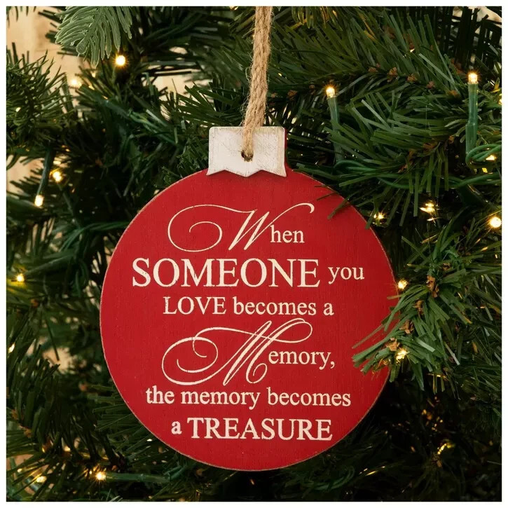 Honor those who have passed on by hanging up this Heaven In Our Home Ornament! This wood piece is shaped like a flat ball ornament with a dimensional topper. A sentimental phrase is printed across the face of the ornament that honors the memories of lost loved ones. Hang this ornament next to a framed photo of your loved one to show them you are thinking of them throughout the holiday season.