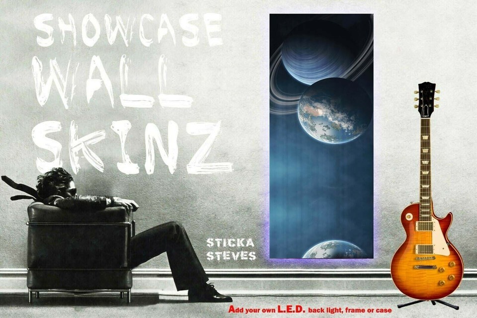 Utilize our Showcase Skinz to further customize your display cabinets, alcoves, guitar case, coffee table or just Sticka it to your wall.