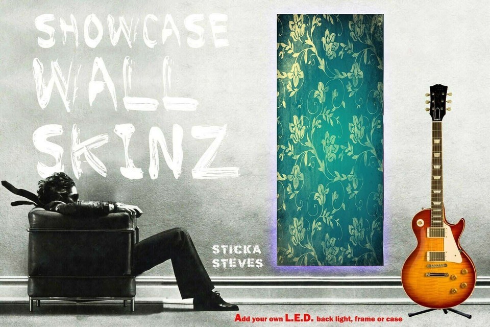 Utilize our Showcase Skinz to further customize your display cabinets, alcoves, guitar case, coffee table or just Sticka it to your wall.